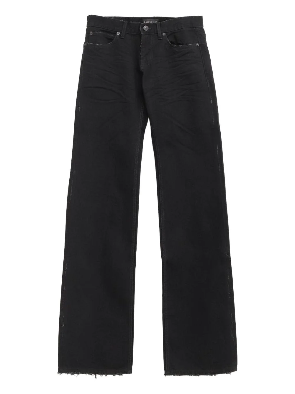 wide-leg jeans Highlights - Black - Frayed hem - Five-pocket design - Button and concealed zip closure - Back yoke detailing - Belt loops Imported Composition Fabric 100%