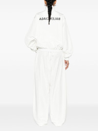 wide-leg track pants Highlights - White - Elasticated drawstring waistband - Wide leg - Two zip-fastening pockets - Mesh lining - When buying this unisex item, keep in mind that it is graded in standard men's sizing. Made in Italy Composition Outer: Polyester 100%, Cotton 52%, Polyamide 48% Lining: Polyester 100% SIZE & FIT Model measurements Height 5 ft 10 in(1.78 m) Bust/Chest 33.07 in(84 cm) Hips 36.61 in(93 cm) Waist 24.8 in(63 cm) FittingInformation This piece is unisex and is designed with a wide-leg, whether you usually select women's or men's sizes Adjust this piece’s waistband to your preference using the drawstring Made from a midweight non-stretch fabric