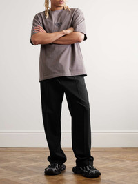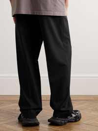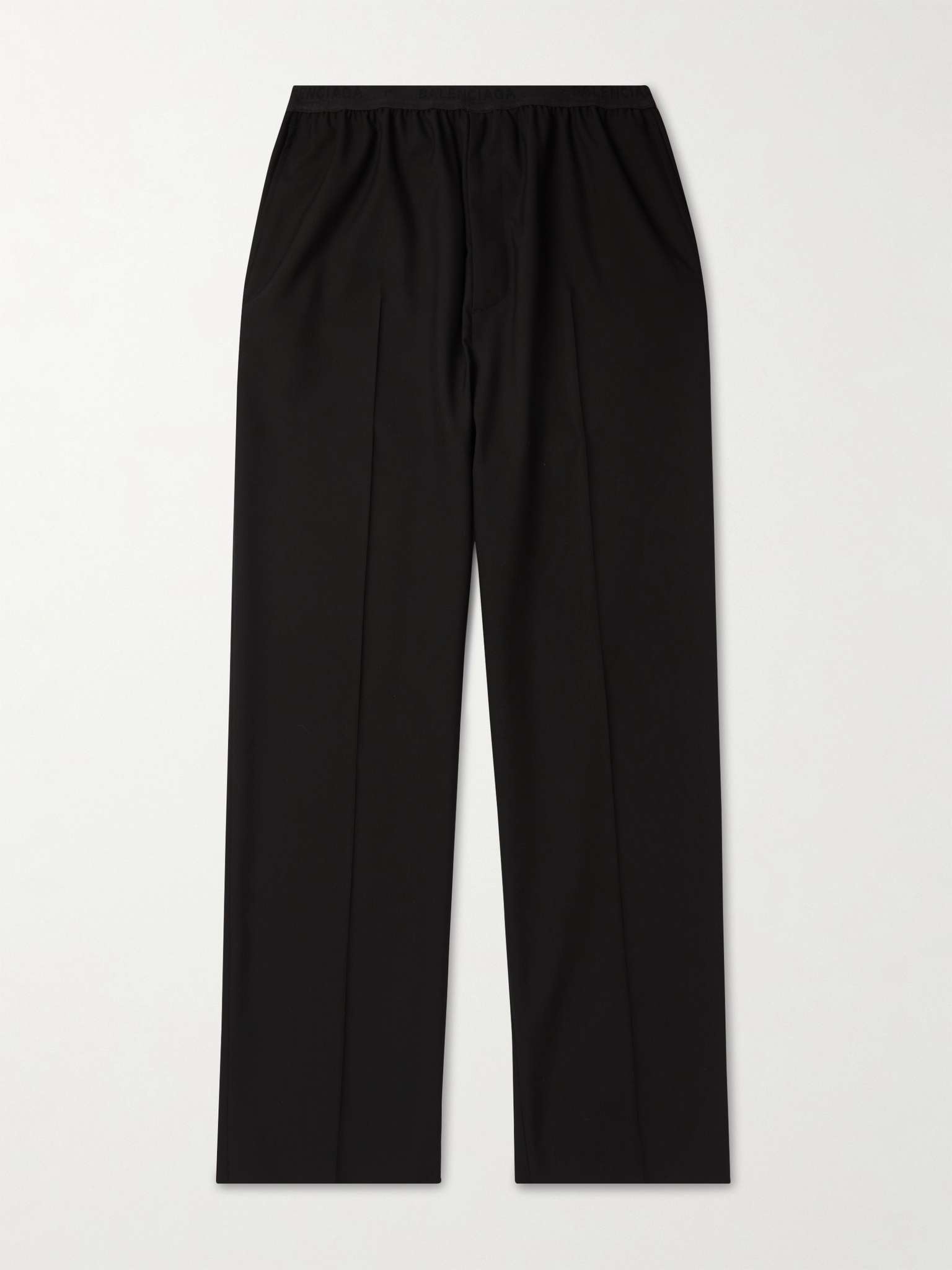 Balenciaga's trousers borrow design elements from both tailoring and sportswear. Topped with a logo-jacquard elasticated waistband, they've been made in Italy from black wool and cut for a wide-leg fit that creates a nice drape. Size & Fit - FR 46 = IT 46/ US-UK 30/ S - FR 48 = IT 48/ US-UK 32/ M - FR 50 = IT 50/ US-UK 34/ L - FR 52 = IT 52/ US-UK 36/ XL - Fits true to size. Take your normal size - Wide leg, low-crotch style - Elasticated at the waist - Mid-weight, non-stretchy fabric - Model is shown wearing a 46 - Model measures: waist size 30, height 6'0"/ 183cm Details & Care - Black wool - 100% wool - Dry clean