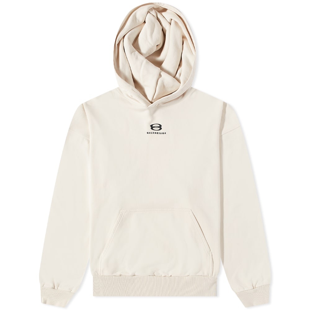 Balenciaga celebrates unity with the closed ring artwork at the chest of this oversized hoody. Arriving in a chalky white shade, it’s crafted from cosy fleeceback cotton jersey and cut to a super-relaxed fit – a premium take on a street-savvy staple. - 100% Cotton - Fleeceback Jersey - Oversized Fit - Fixed Hood - Printed Branding - Pouch Pocket - Ribbed Trims - Made in Portugal