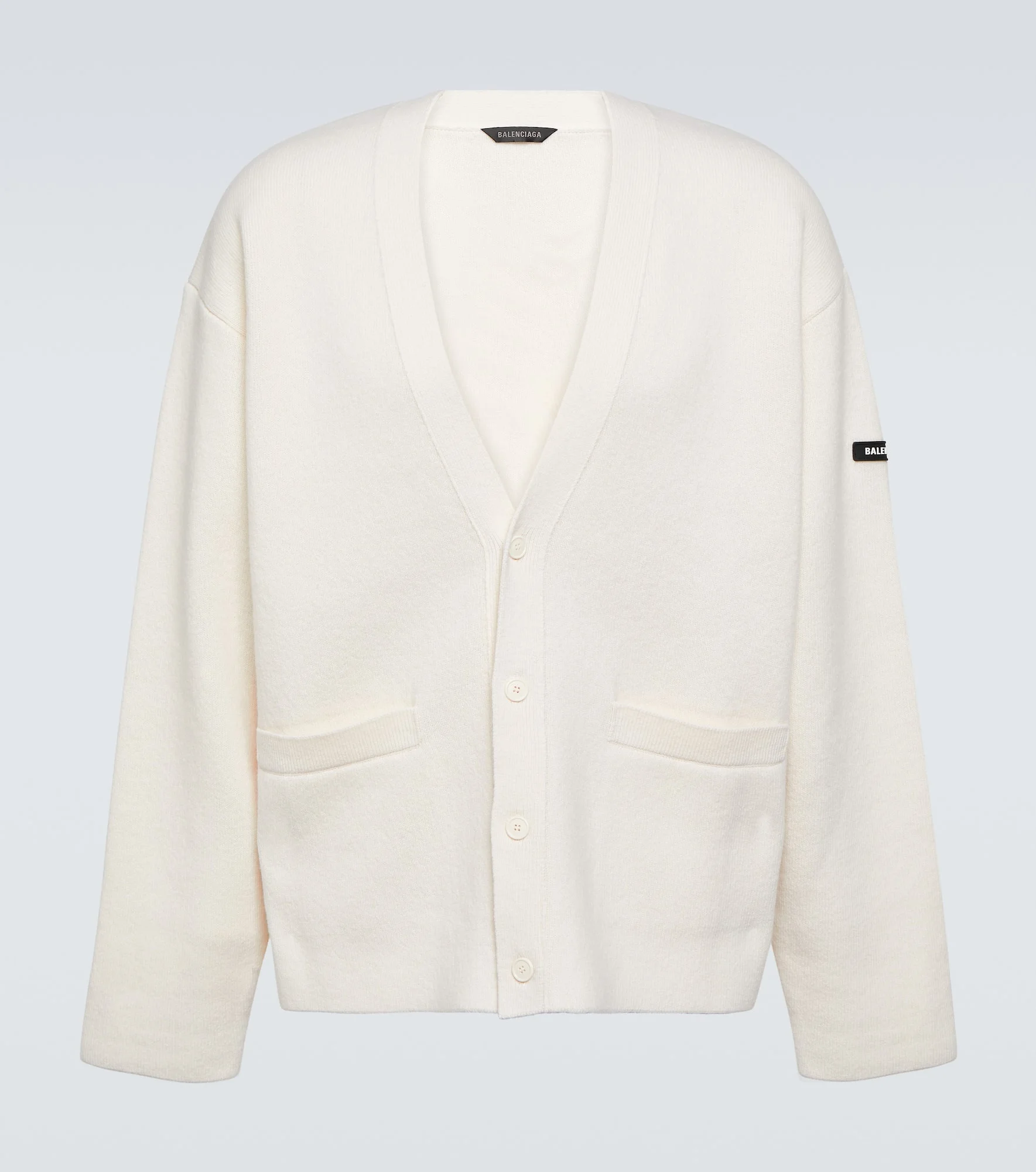 Innovation is at the heart of Balenciaga, which proudly presents its modern interpretation of fashion in every piece. Made from a warm wool-blend, this cardigan has a long-sleeved design. Product Details - Material: 97% wool, 2% polyamide, 1% elastane - Care instructions: dry clean - Made in Italy - Designer color name: White - Closure: buttoned front - Pockets: welt pockets - Item number: P00859644 Size & Fit - True to size - Dropped shoulders - Oversized - Mid-weight material - Falls below the hip - The model in the picture is 185cm-6'1" and wearing a size 3