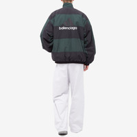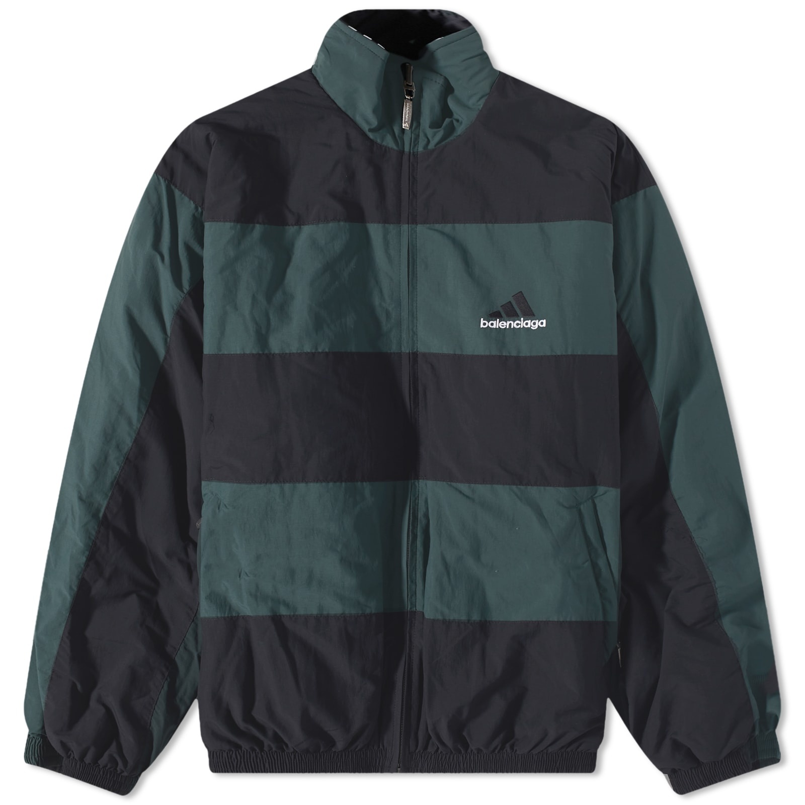 Balenciaga is linking up with adidas to reimagine sporty essentials, including this track jacket. In Balenciaga’s signature style, this jacket features a relaxed, baggy silhouette. Embroidered on the chest and printed in large on the back, a bespoke Balenciaga Trefoil logo celebrates the brands’ union. - 100% Polyester - Zip Closure - Elasticated Hem and Cuffs - Two Side Pockets - Embroidered Branding - Made in Italy