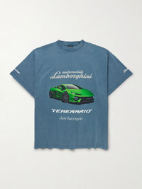 + Lamborghini Oversized Printed Cotton-Jersey T-Shirt Blue
