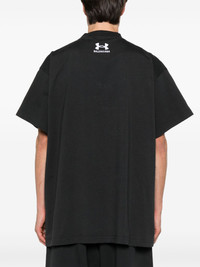 x Under Armour® logo-embroidered T-shirt Highlights - Black - Crew neck - Drop shoulder - Short sleeves - Straight hem Imported Composition Polyester 100%, Cotton 100% SIZE & FIT Model measurements Height 6 ft 2 in(1.87 m) Bust/Chest 37.79 in(96 cm) Hips 37.79 in(96 cm) Waist 30.31 in(77 cm) FittingInformation Designed for an oversized fit, offering additional room throughout Made from a midweight non-stretch fabric, this piece offers minimal elasticity when worn