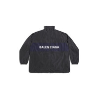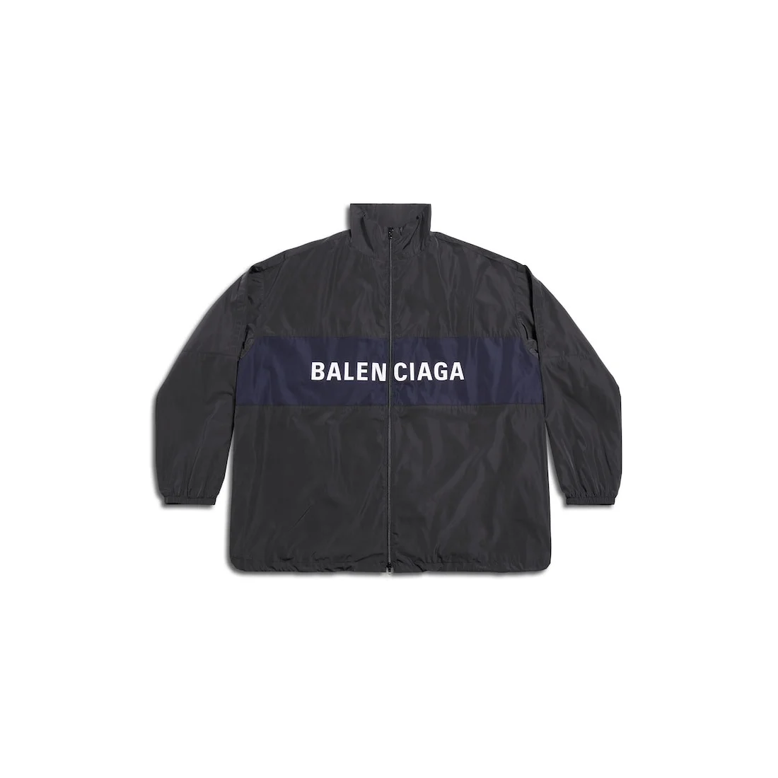 Balenciaga Zip-Up Jacket in black light technical micro faille PRODUCT DETAILS • Light technical micro faille • This item is unisex • Large fit • High neck • Double-ended zip fastening • 2 zipped slash pockets at front • Elasticated cuffs • Drawstring at waistline • Balenciaga logo printed at front • Made in Italy • Dry cleaning • Model is 180 cm / 5'11" and is wearing a size S Material: 100% polyester