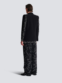 Crepe 1-button jacket with Constellation embroidery - Italian tailored collar - Tone-on-tone satin lapels - Structured shoulders - Long sleeves - Straight cuffs with 3 press studs - Breast pocket - 2 side slash pockets with flaps - Fastening with 1 press stud - Bead and rhinestone embroidery - 2 slash inside pockets with buttons - Satin lining - Straight cut - Model measures 188cm and wears a size 48 - Main material: 100% viscose - Made in India - Item: EH0SE444PC76100% of the viscose fibres used to make this garment come from certified, sustainably managed forests