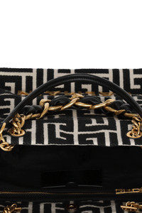DETAILS AND INSIGHT Balmain 1945 soft cabas monogram handbag in ivoire/noir. 84%COTTON 16%POLYESTER L 40 x H 30 x D 13.5 CM Fits iPhone 16 Pro Max Made in Italy Style EN1FF827TJXN-GFE