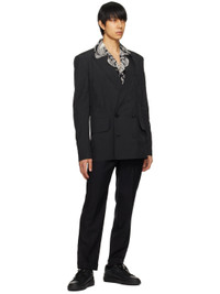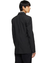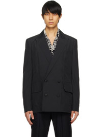 Polyester taffeta blazer. · Peaked lapel · Double-breasted button closure · Welt pocket and flap pockets · Padded shoulders · Four-button barrel cuffs · Central vent at back hem · Taped seams at interior · Partial satin lining · Logo-engraved black hardware Part of the Main Lab collection. Supplier color: Noir