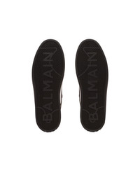 B-Court Flip mirror-effect faux leather and calfskin leather trainers - Lace fastening with engraved silver eyelets - Tongue with woven logo featuring the Balmain Paris logo - Perforated leather sides and upper - Silver mirror-effect faux leather insert on the front and back - Embossed Balmain logo on the side - Embossed B logo on the back - Chunky rubber outer sole - Visible stitching - Raised Balmain logo on the back - Technical fabric lining - Leather insole - Main material: 100% calfskin - Made in France - Item: FM1VI349LCFS