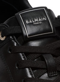 B-Court mirror-effect faux leather and calfskin leather trainers - Lace fastening with engraved silver eyelets - Leather label with contrasting Balmain Paris logo - Metal PB logo on the side - Mirror-effect faux leather insert with embossed B logo on the back - Visible stitching - Thick rubber outer sole with raised Balmain logo at the back - Leather lining and insole - Main material: 100% lambskin - Made in France - Item: FM1VI390LNSS