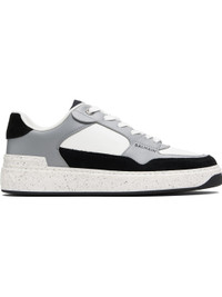 Low-top buffed calfskin and calfskin suede sneakers. · Lace-up closure · Leather logo patch at padded tongue · Padded collar · Logo graphic printed at outer side · Logo embossed at outer side and heel tab · Mesh and suede lining · Logo-embossed speckled rubber midsole · Treaded rubber sole Supplier color: Black/Gray Upper: calfskin. Sole: rubber. Made in Italy 252251M237020