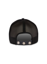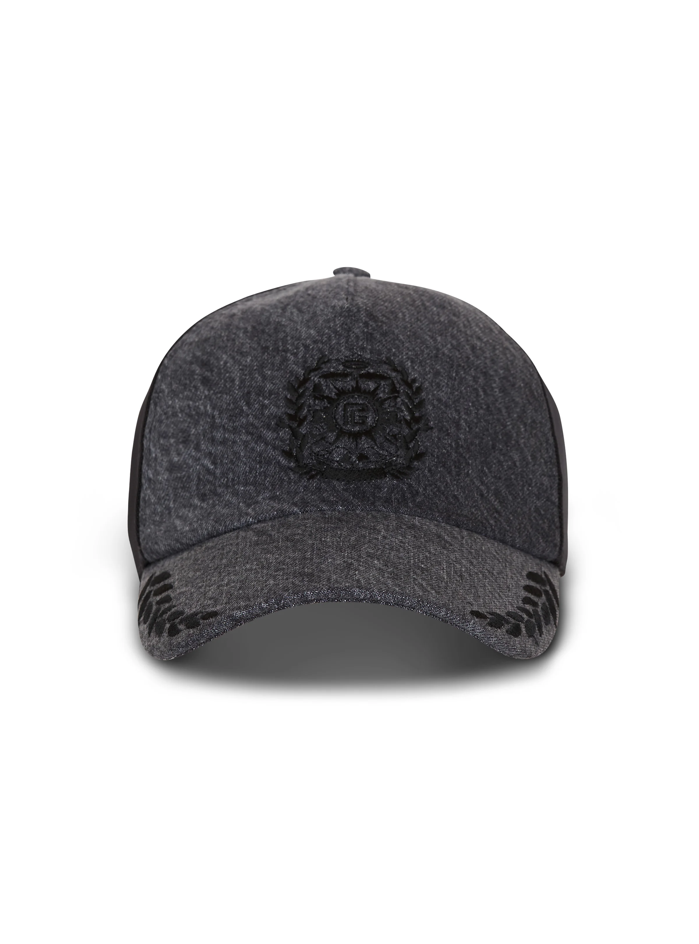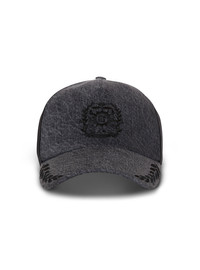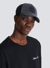 Balmain Ecusson embroidered denim and mesh cap - Balmain Ecusson embroidered on the front - Curved embroidered visor - Mesh inserts at the back - Adjustable tab with 3 silver metal “Coin” press studs at the back - Cotton semi-lining with Balmain Paris printed ribbons - Main material: 100% cotton - Made in Italy - Item: FH1XA490MH56