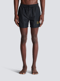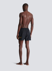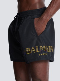 Vintage Balmain swim shorts - Elasticated drawstring waist - Silver metal eyelets and aglets - 2 slash side pockets - Contrasting vintage Balmain logo printed on the side - Model measures 189cm and wears a size M - Main material: 100% polyester - Made in Italy - Item: BWB641590