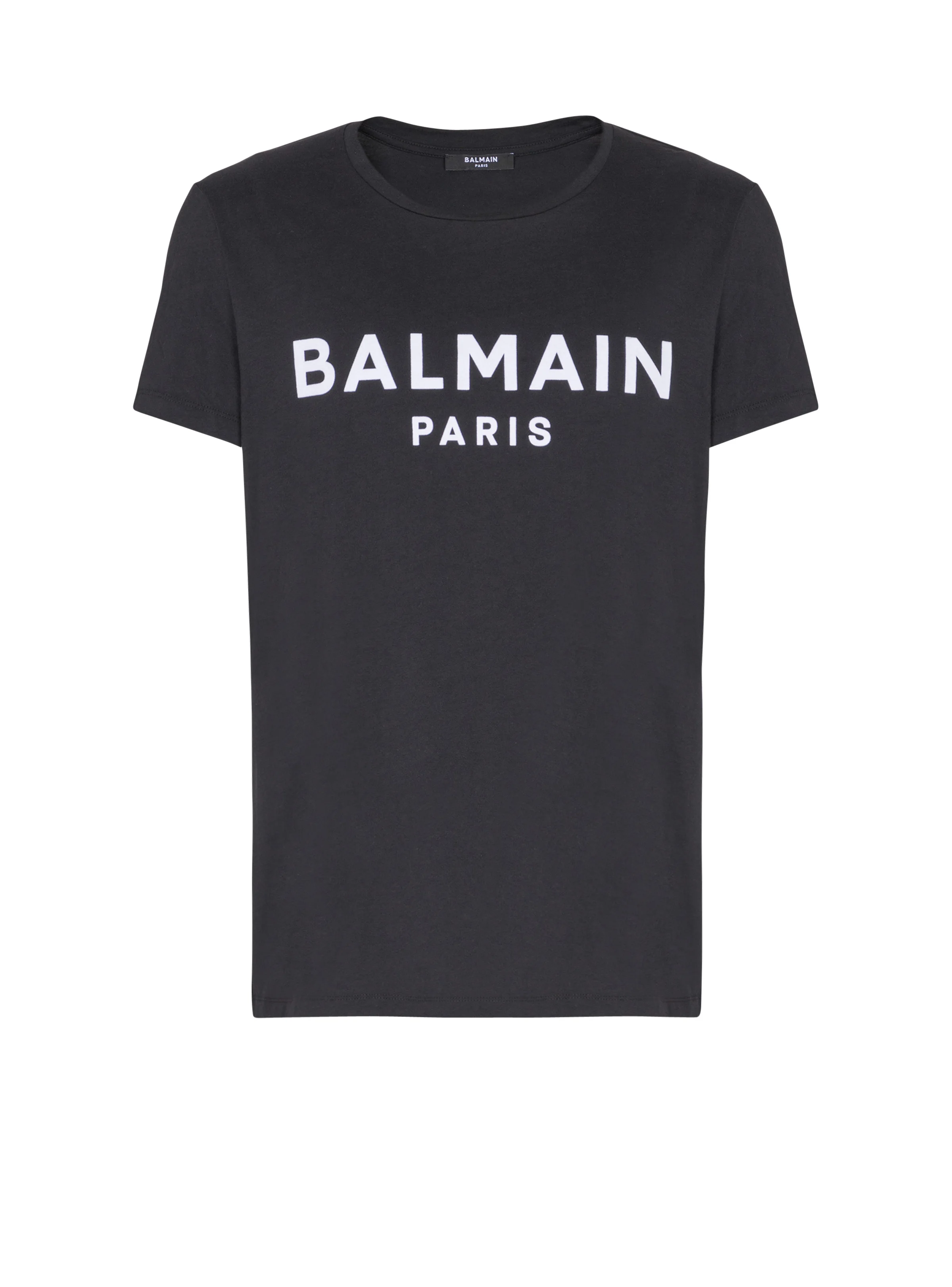 T-shirt with Balmain Paris print - Round neck with ribbed trim - Short sleeves - Contrasting Balmain Paris logo printed on the front - Regular fit - Model measures 190cm and wears a size M - Main material: 100% cotton - Made in Portugal - Item: FH1EG000BB73100% of the cotton fibres used to make this garment are certified and organically farmed