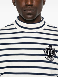 striped long-sleeve T-shirt Highlights - White and black - Striped pattern - Emblem applique - Round neck - Long sleeves Imported Composition Fabric 100% SIZE & FIT Model measurements Height 6 ft 0 in(1.84 m) Bust/Chest 37.79 in(96 cm) Hips 37 in(94 cm) Waist 31.49 in(80 cm) Washing instructions Read Manufacturer Guidelines