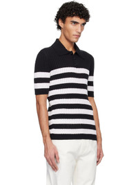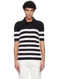 Rib-knit cotton-blend polo. · Striped pattern throughout · Spread collar · Three-button placket Supplier color: Noir/Blanc 88% cotton, 12% polyester. Made in France 261251M212004