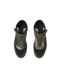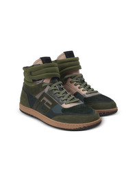 Balmain Swan Mid-Top trainers in calfskin and suede - Lace fastening and a velcro strap - Leather tongue with embossed PB logo label - PB logo insert on the side - Balmain logo embossed on the side and back - Textured rubber outsole with raised Balmain logo - Leather lining and insole - Main material: 100% calfskin - Made in Italy - Item: EM1VG376LMFG