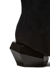 Suede ankle boots - Pointed toe - Topstitching on the front - Hexagonal heel with diamond-effect facets - Nylon inner zip with silver metal pull - Leather lining - Leather insole - Silver metal Balmain logo on the insole at the heel - Leather sole, rubber toe - Heel height: 6.5 cm - Main material: calfskin - Made in Italy - Item: CM1TE329LCTA