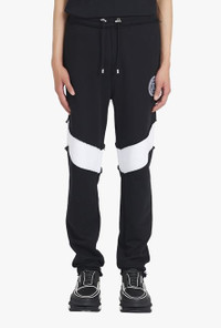 Black and white organically cultivated cotton sweatpants Elasticized waistband with drawstring, side pockets, embroidered Balmain logo badge ITEM INFORMATION - Casual cut - Fits true to size, select your usual size - The model is wearing size M - The model's height is 187 cm / 6 ft 1 in, bust 97 cm / 38 in, waist 80 cm / 31 in, hips 96 cm / 37 in - Made in Portugal - Material: 100% organically cultivated cotton - Item: XH0OB14500JBEAB