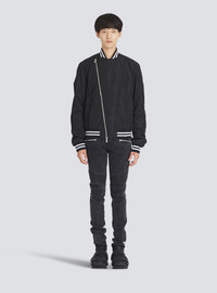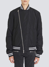 Nylon bomber jacket - Asymmetrical zip fastening in front - black and white striped ribbing - two zip pockets - Casual cut - Fits true to size - select your usual size - The model is wearing IT size 48 - The model's height is 186 cm - Main material: 100% Polyamide - Made in Slovakia - Item: YH1TF086XB27
