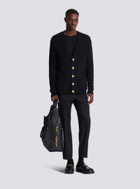 Buttoned cardigan - V-neckline - Fastening with 5 "Chain Lion" buttons in gold metal - Long sleeves - 2 patch pockets on the front - Ribbed trim - Relaxed fit - Main material: 39% viscose 33% cotton 27% polyamide 1% elastane - Made in France - Item: FH1KL080KI75