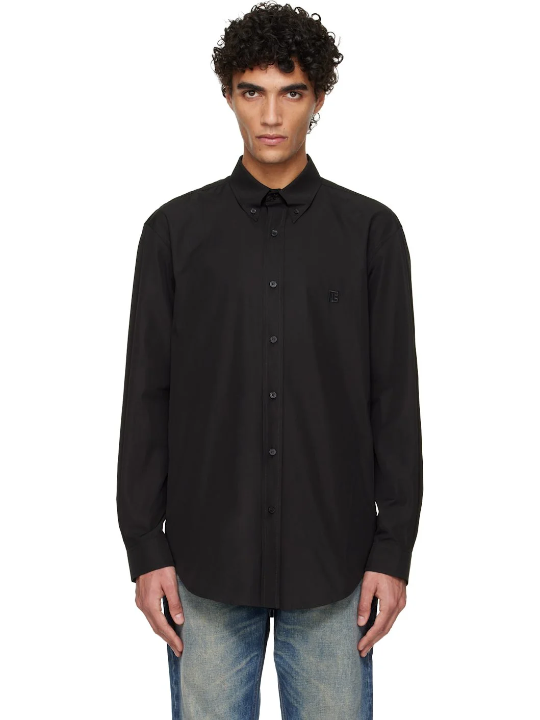 Cotton poplin shirt. · Spread collar · Button closure · Logo embroidered at chest · Shirttail hem · Buttoned barrel cuffs · Box pleat at back yoke Supplier color: Black 100% cotton. Made in Italy 261251M192006