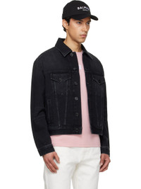 Non-stretch denim jacket. · Fading and whiskering throughout · Spread collar · Button closure · Flap pockets at chest · Welt pockets at waist · Buttoned barrel cuffs · Adjustable button tabs at back hem · Logo patch at back hem · Unlined Supplier color: Noir 100% cotton. Made in Italy 261251M177001
