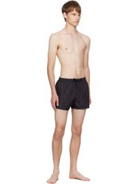 Satin swim shorts. · Leopard pattern printed throughout · Drawstring at elasticized waistband · Three-pocket styling · Mock fly · Logo embroidered at back waist · Mesh brief-style lining Supplier color: Leopard grey 100% polyester. Made in Italy 252251M208000