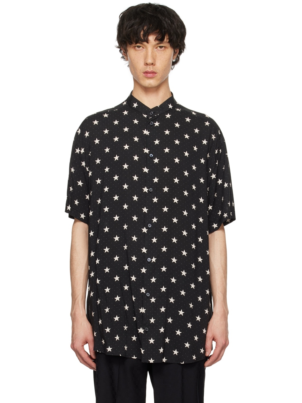Viscose batiste shirt. Graphic pattern printed throughout. · Band collar · Button closure · Shirttail hem · Dropped shoulders Supplier color: Noir/Ivoire