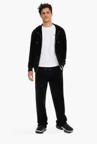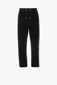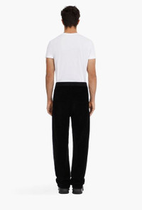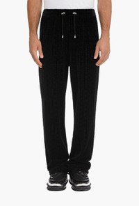 Black velvet sweatpants Stretch waist with drawstring, two pockets in back, embossed black Balmain monogram ITEM INFORMATION - Relaxed fit - Fits true to size, select your usual size - The model is wearing a size M - The model's height is 187 cm / 6 ft 1 in, bust 97 cm / 38 in, waist 80 cm / 31 in, hips 96 cm / 37 in - Made in Bulgaria - Materials: 78% Cotton, 22% Polyester - Item: VH2OB045B0900PA