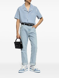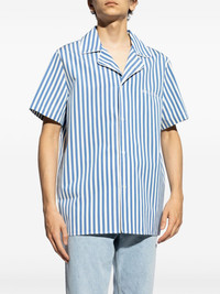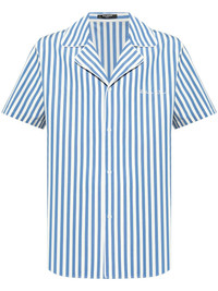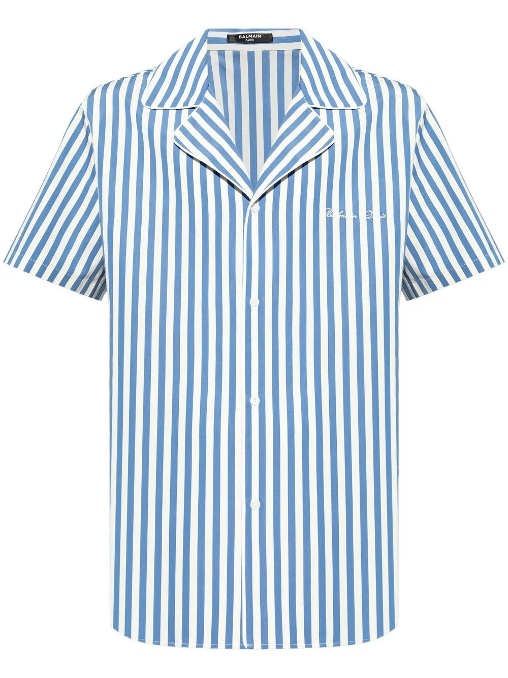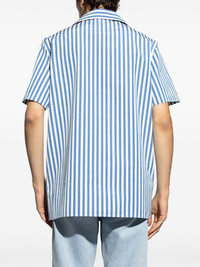striped cotton shirt Highlights - Blue/white - Cotton - Poplin texture - Candy stripe pattern - Embroidered logo at the chest - Piped-trim detailing - Camp collar - Front button fastening - Short sleeves - Straight hem Made in Italy Composition Cotton 100%