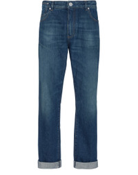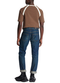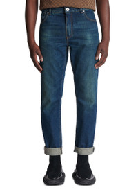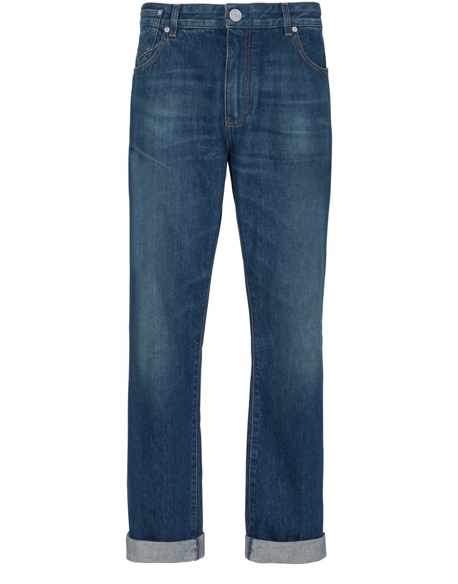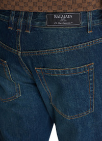 DESCRIPTION - logo at the back - five-pocket style - back patch pocket - buttoned and concealed zipper closure - belt loops DETAILS AND CARE MATERIAL: 100% Cotton COLOR: navy COUNTRY OF MANUFACTURE: Italy PRODUCT CODE: BLMS6625BLUE11AA00