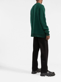 button-embossed knitted jumper button-embossed knitted jumper from Balmain featuring dark green, black, wool-cashmere blend, knitted construction, stripe trim, logo-embossed buttons, crew neck, long sleeves and straight hem. Made in France Composition Wool 57%, Cashmere 28%, Polyamide 15% SIZE & FIT Model measurements Height 6 ft 2 in(1.88 m) Bust/Chest 35.03 in(89 cm) Hips 35.82 in(91 cm) Waist 27.95 in(71 cm) FittingInformation This piece fits true to size. We recommend you get your regular size Cut for a relaxed fit Made with a mid-weight fabric