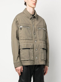 button-up stretch-cotton military jacket sage green stretch-cotton two front cargo pockets two zip-fastening chest pockets front button fastening classic collar long sleeves buttoned cuffs straight hem Made in Italy Composition Cotton 98%, Spandex/Elastane 2% SIZE & FIT Model measurements Height 6 ft 3 in(1.91 m) Bust/Chest 37 in(94 cm) Hips 37.79 in(96 cm) Waist 28.34 in(72 cm) FittingInformation This piece fits true to size. We recommend you get your regular size Cut for a loose fit Made with a mid-weight stretch fabric Washing instructions Hand Wash