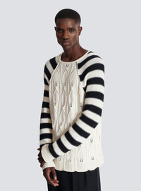 Cable knit jumper - Round neckline - Long Breton stripe-style sleeves - Plain cable knit on the front and back - Ribbed trim - Relaxed fit - Model measures 190cm and wears a size M - Main material: 44% cotton 44% lyocell 12% polyamide - Made in Italy - Item: FH1KF125KI68