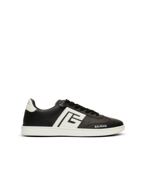 Calfskin Balmain Swan trainers - Lace fastening - Diamond-embossed leather tongue with PB logo - Contrasting PB logo on the sides - Balmain logo printed on the front and back - Textured rubber outsole with raised Balmain logo - Leather lining and insole - Main material: 100% calfskin - Made in Italy - Item: EM0VI360LVTR