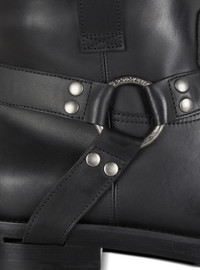 Calfskin leather biker ankle boots - Square toe - Ring with leather tabs and metal rivets - Side pull loop - Leather outer sole, insole and lining - Main material: 100% calfskin - Made in Italy - Item: FM1TE365LVIT