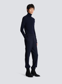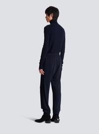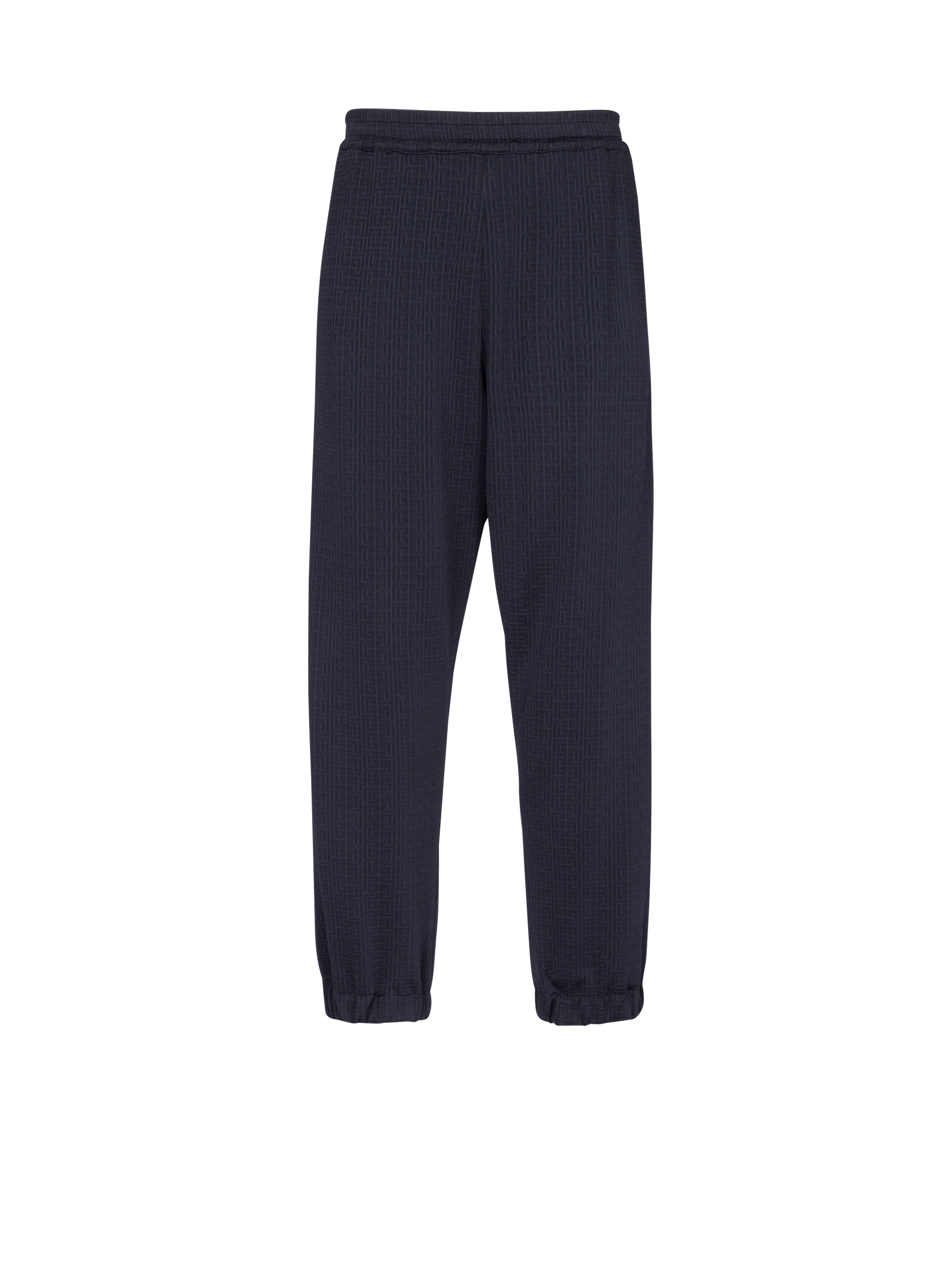 Jersey mini monogram jogger-style trousers - Flowing fit, gathered ankles - Elasticated adjustable waist - 2 slanted pockets - Model measures 189cm and wears a size 48 - Main material: 98% viscose 1% elastane 1% polyamide - Made in Bulgaria - Item: CH1PO073JH31100% of the viscose fibres used to make this garment come from responsibly managed and FSC®-certified forests