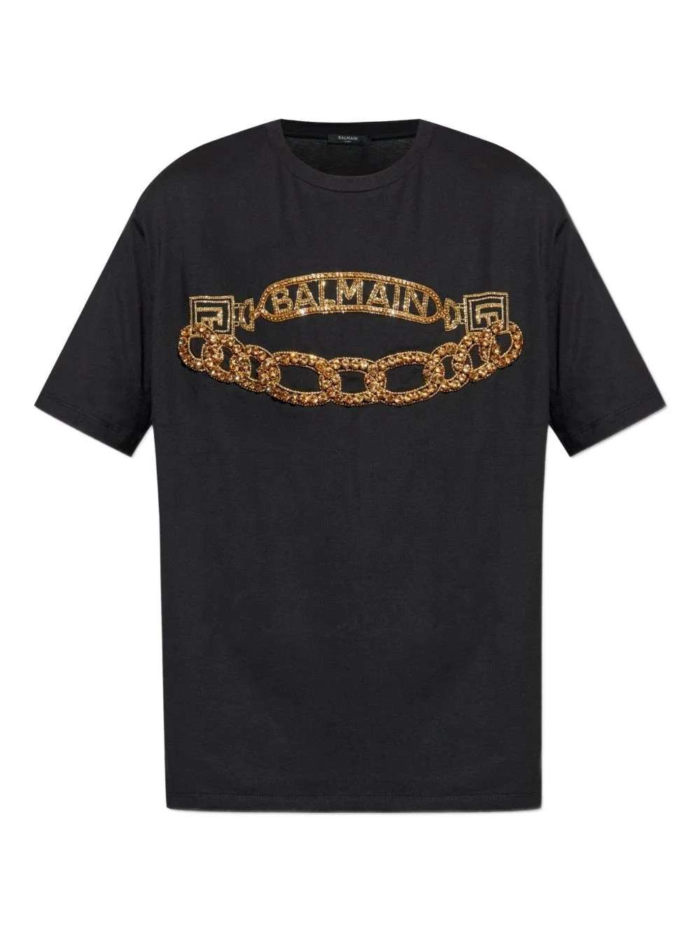 chain logo T-shirt Highlights - Black - Chain logo design - Round neckline - Short sleeves Imported Composition Cotton 100% Washing instructions Read Manufacturer Guidelines