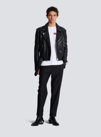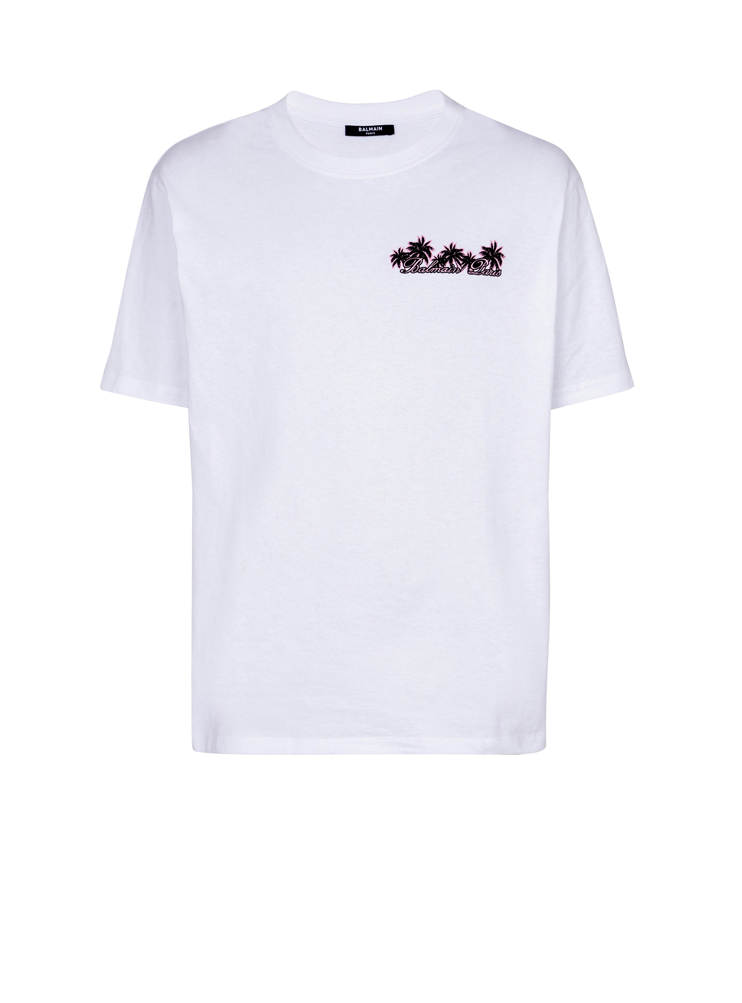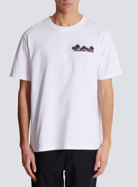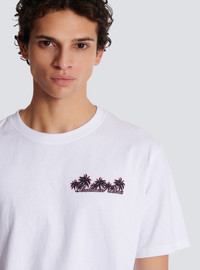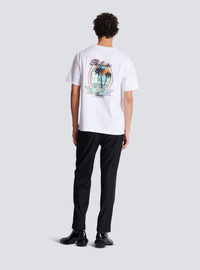 Club Balmain Signature printed T-shirt - Straight cut - Round neck with ribbed trim - Short sleeves - Contrasting Balmain Signature palm tree logo printed on the front - Balmain Club print on the back - Model measures 189cm and wears a size M - Main material: 100% cotton - Made in Portugal - Item: DH1EG000GD82100% of the cotton fibres used to make this garment are certified and organically farmed