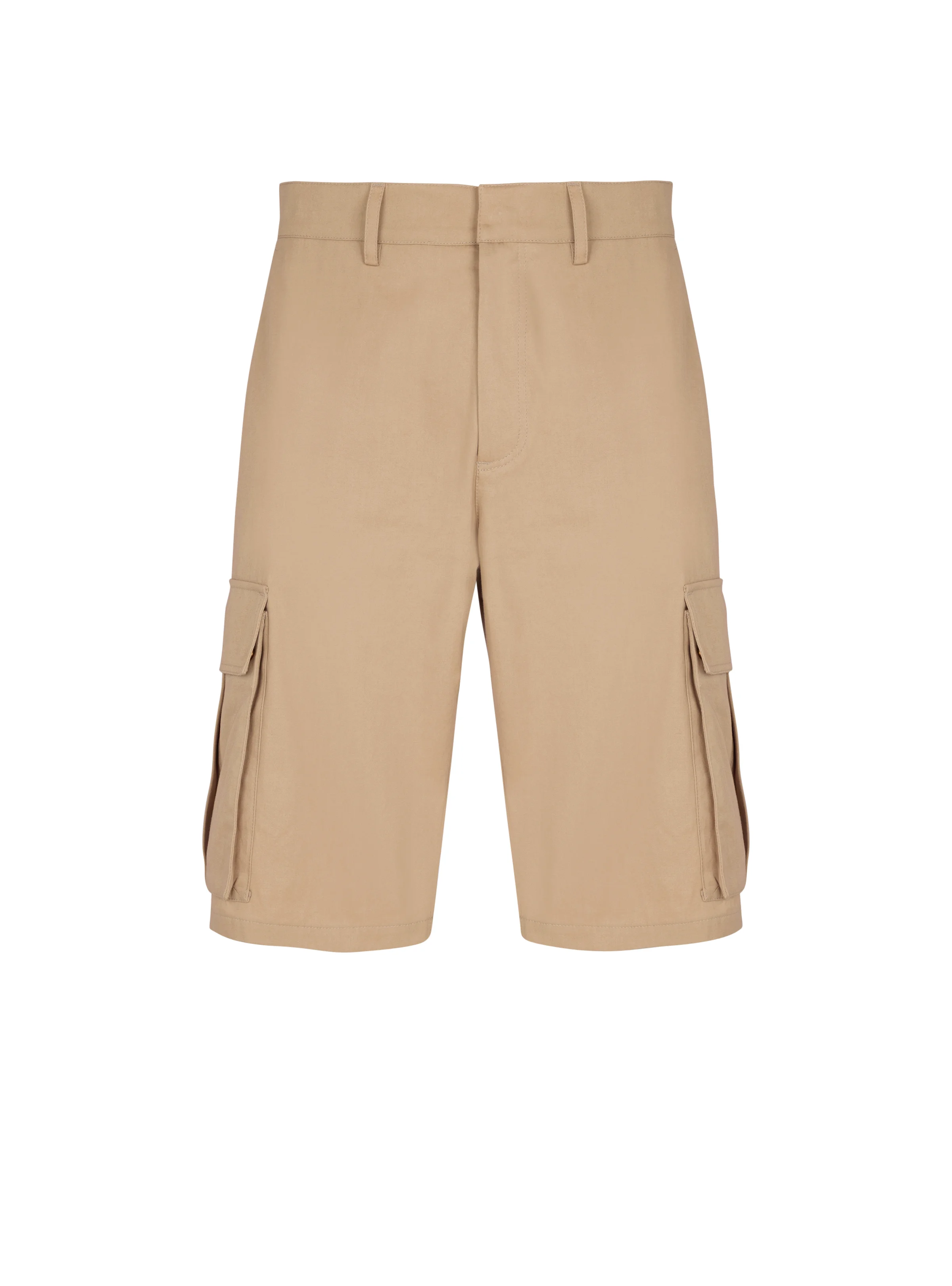 Cotton canvas cargo Bermuda shorts - Waistband with belt loops - Fly fastening with button and hook - Italian side pockets, patch pockets on the back and flap pockets on the sides - Brushstroke Balmain Paris embroidery on the back - Relaxed fit - Model measures 187cm and wears a size 48 - Main material: 100% cotton - Made in Moldova - Item: GH1PA181CG43100% of the cotton fibres used to make this garment are certified and organically farmed