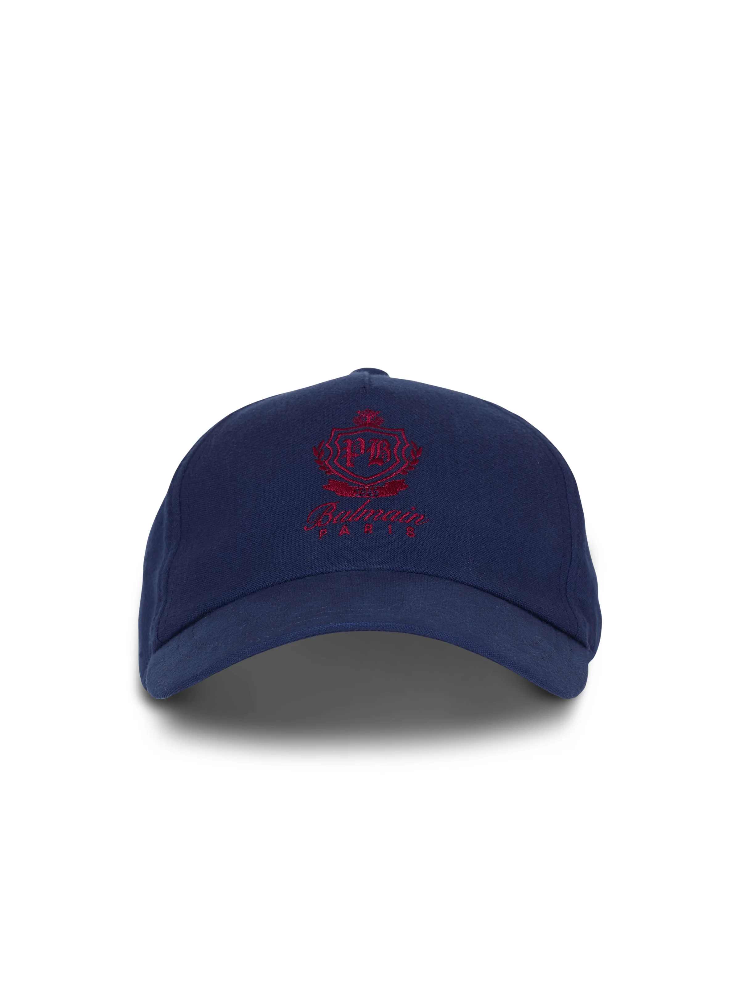 Cotton College Emblem cap - Contrasting Balmain Paris and PB logo embroidered on the front - Adjustable back strap with engraved silver rectangular metal buckle - Topstitching - Classic fitted shape - Main material: 100% cotton - Made in Italy - Item: FH0XA232CG32