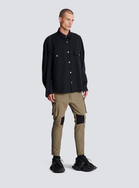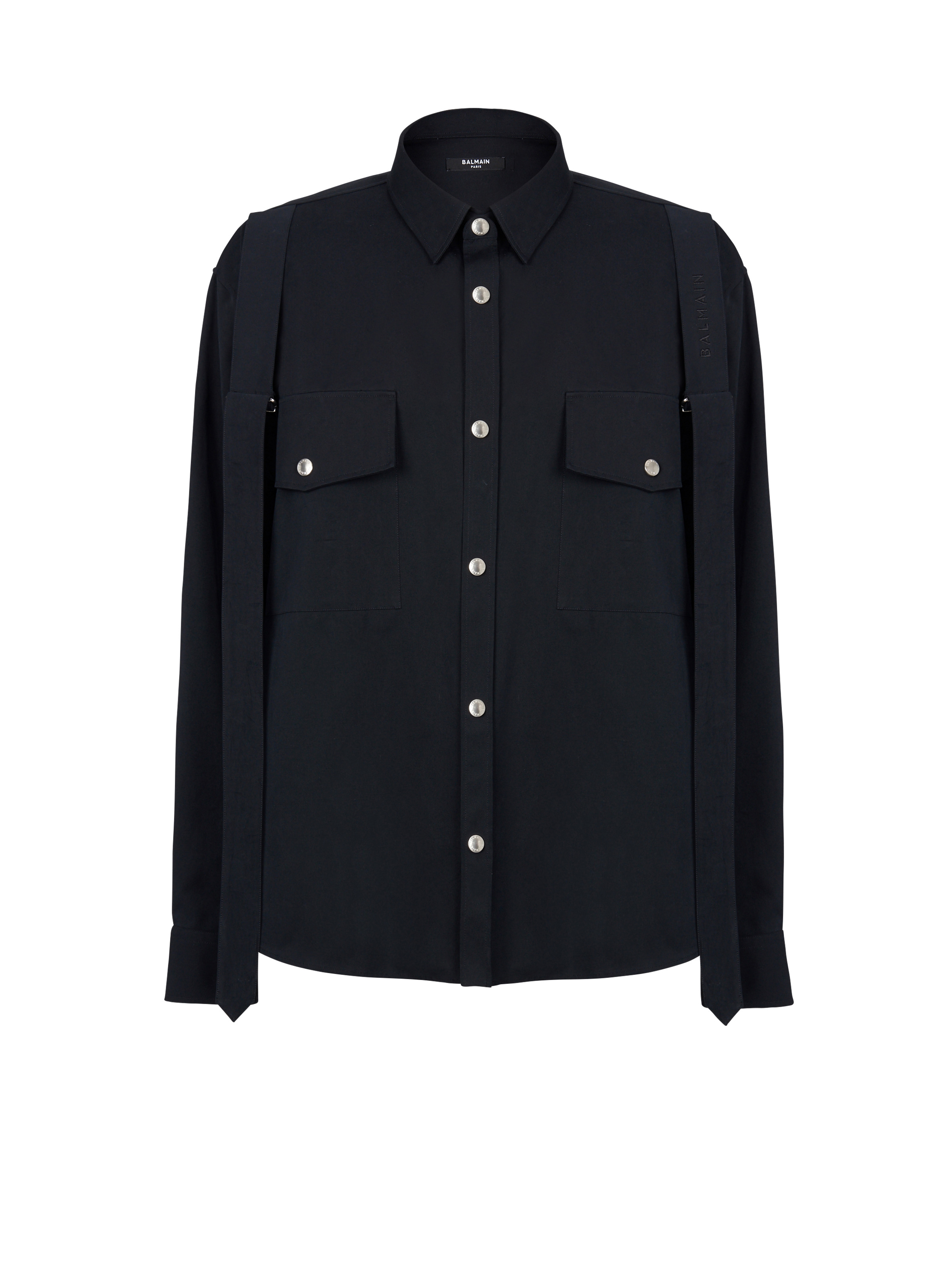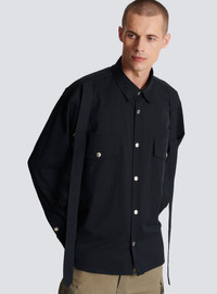 Cotton shirt with strap - Long sleeves - front button fastening - two front pockets - two pockets on the front - two straps on each shoulder - Oversized cut - True to size (select your usual size) - The model is wearing a size FR 39 - The model’s height is 186 cm - Material: 100 % cotton - Made in Italy - Item: AH1HS165CC63