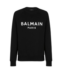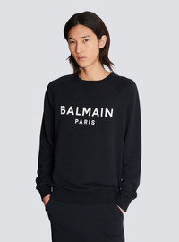 Balmain Paris printed sweatshirt - Straight cut - Round neck - Long sleeves - Contrasting Balmain Paris logo printed on the front - Ribbed edging - Model measures 190cm and wears a size M - Main material: 100% cotton - Made in Portugal - Item: DH1JQ005BB65100% of the cotton fibres used to make this garment are certified and organically farmed
