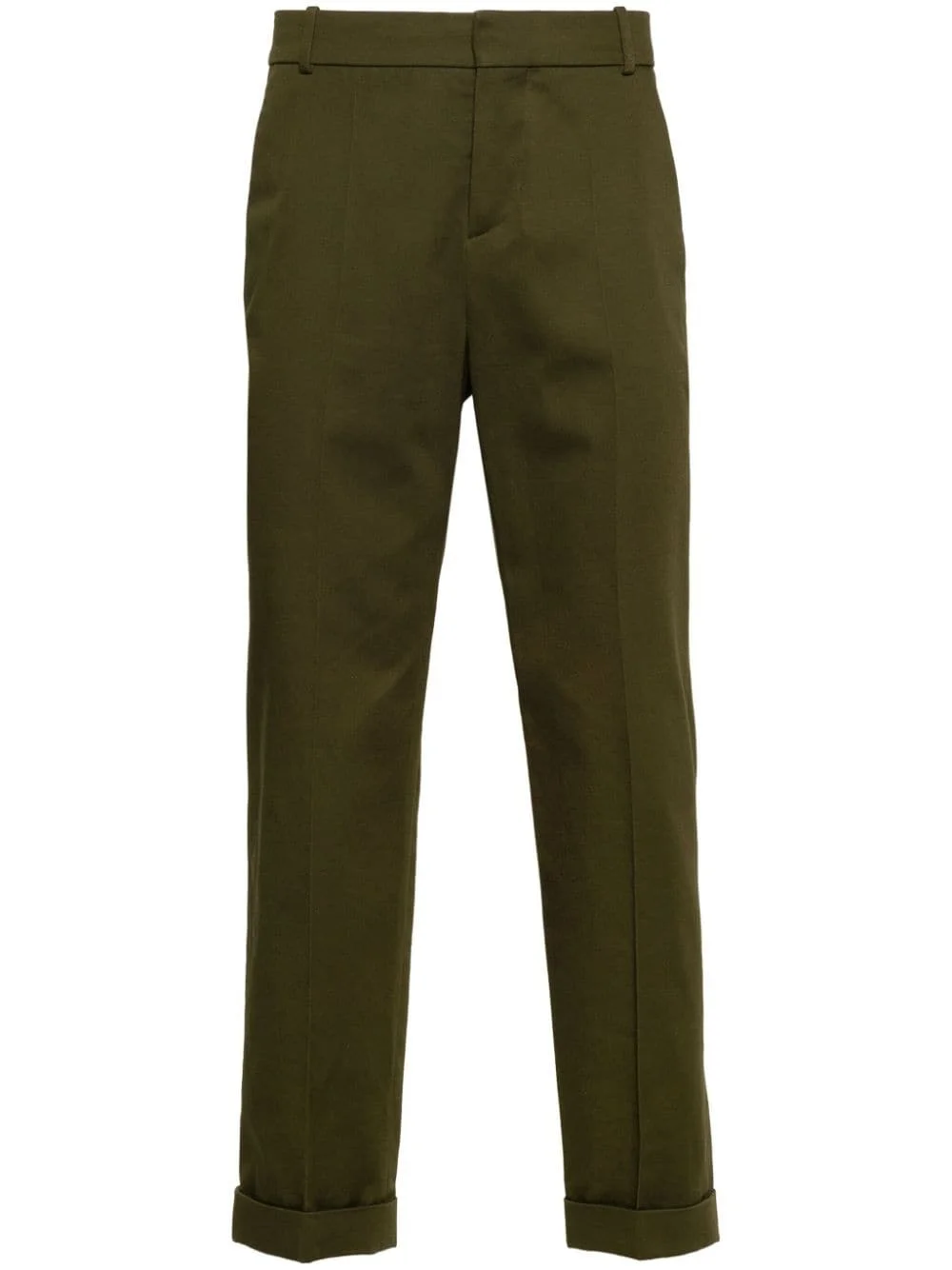 cotton tapered trousers Highlights - Khaki - Cotton - Tapered leg - Belt loops - Pressed crease - Two diagonal pockets to the sides - Two rear button-fastening pockets - Turn-up cuffs - Concealed front button, hook and zip fastening Imported Composition Cotton 100% SIZE & FIT Model measurements Height 6 ft 0 in(1.84 m) Bust/Chest 34.64 in(88 cm) Hips 35.03 in(89 cm) Waist 27.95 in(71 cm) FittingInformation Designed for a tapered leg, offering a loose unrestricted fit over the leg with a closer fit towards the ankle Made from a midweight non-stretch fabric This piece fits true to size – take your usual size