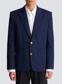 Cotton twill 2-buttons jacket - Italian tailored collar - Long sleeves - Epaulettes with buttons - Embroidered Balmain Paris label - Breast pockets - Straight cut - Model measures 187cm and wears a size 48 - Main material: 100% cotton - Made in Portugal - Item: GH1SI885CG43100% of the cotton fibres used to make this garment are certified and organically farmed