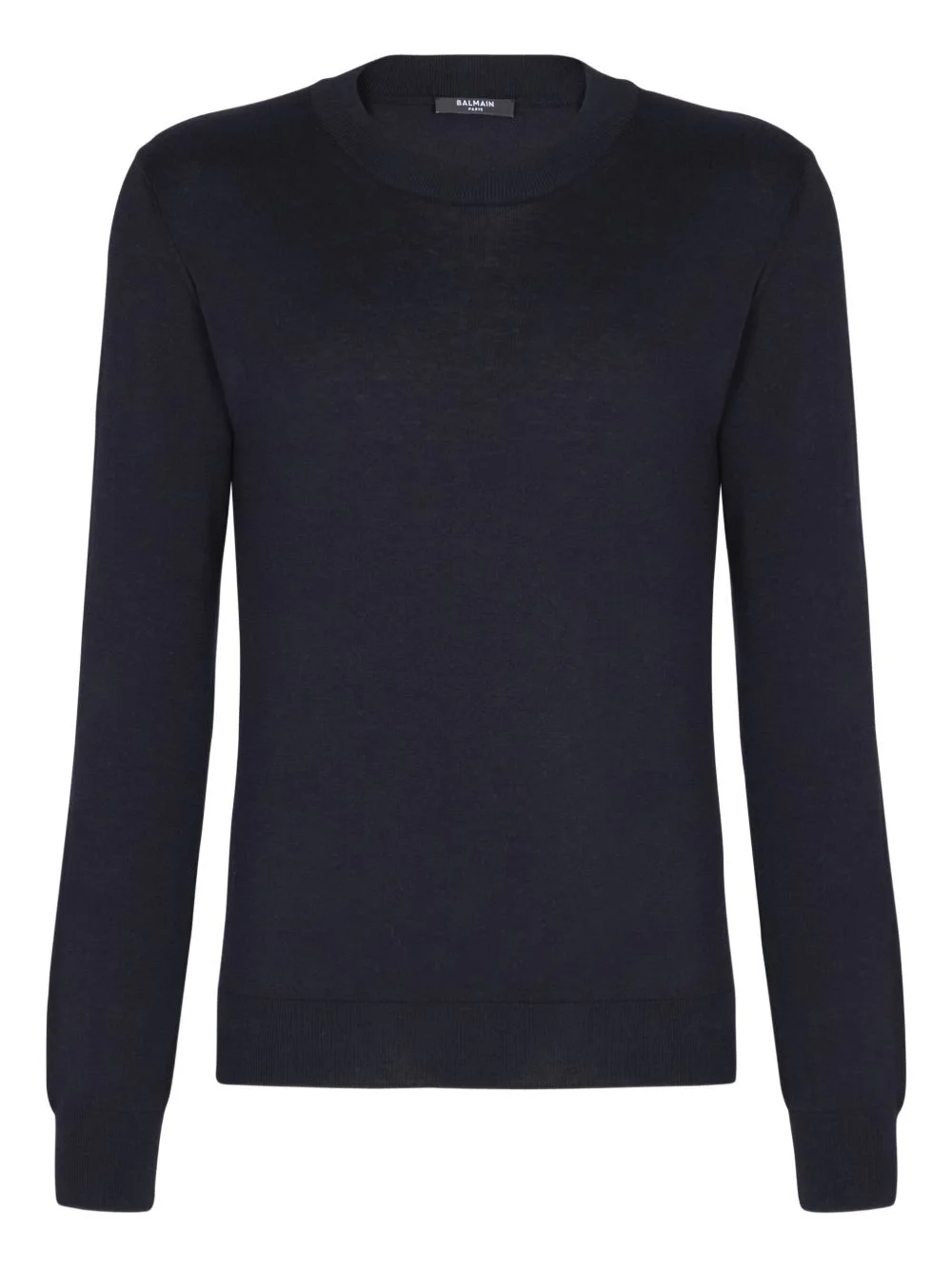 crew-neck sweater Highlights - Navy - Logo detail - Round neck - Long sleeves Made in Italy Composition Outer: Silk 54%, Cotton 44%, Lycra 1%, Polyamide 1% Washing instructions Specialist Cleaning