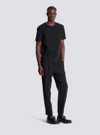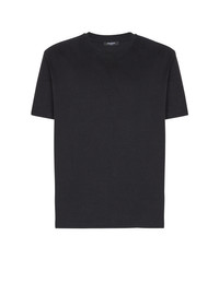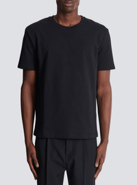 T-shirt with vintage gel Balmain logo - Round neck with ribbed trim - Short sleeves - Vintage Balmain logo in gel on the chest - Slim fit - Model measures 190cm and wears a size M - Main material: 100% cotton - Made in Bulgaria - Item: FH0EG000GF30100% of the cotton fibres used to make this garment are certified and organically farmed