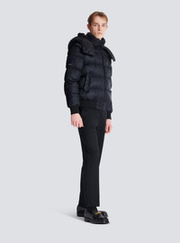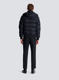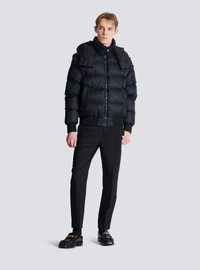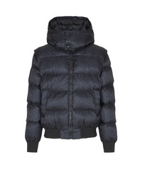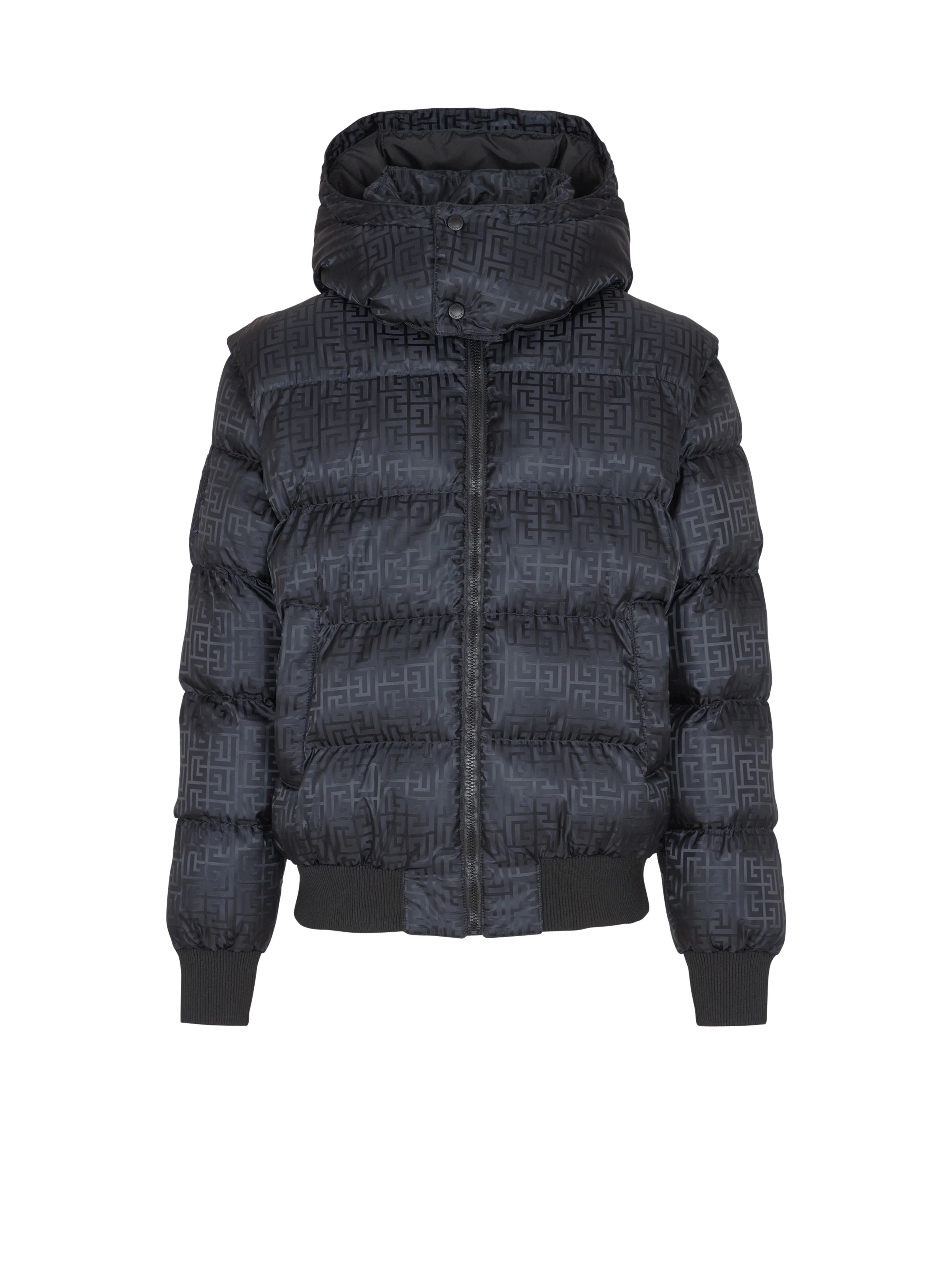 Padded jacquard jacket with tone-on-tone PB Labyrinthe monogram - High neck - Detachable press stud and zip hood - Detachable long sleeves with zips - Balmain Ecusson embroidery on the sleeve - 2 press stud pockets on the sides - Zip fastening, Balmain Paris-engraved slider in tone-on-tone metal - Ribbed trim - Inside pocket with press stud - Lined jacket - Cropped fit - Model measures 190cm and wears a size 48 - Main material: 100% polyamide - Made in Moldova - Item: FH1TP161XB11