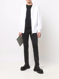 debossed-logo detail jeans black stretch-cotton panelled design logo patch to the rear debossed logo to the rear belt loops front button and zip fastening classic five pockets Made In Italy Composition Lining: Cotton 97%, Spandex/Elastane 3% Outer: Calf Leather 100%, Cotton 98%, Spandex/Elastane 2% SIZE & FIT Model measurements Height 6 ft 1 in(1.85 m) Bust/Chest 35.82 in(91 cm) Hips 37.79 in(96 cm) Waist 29.13 in(74 cm) Washing instructions Dry Clean Only